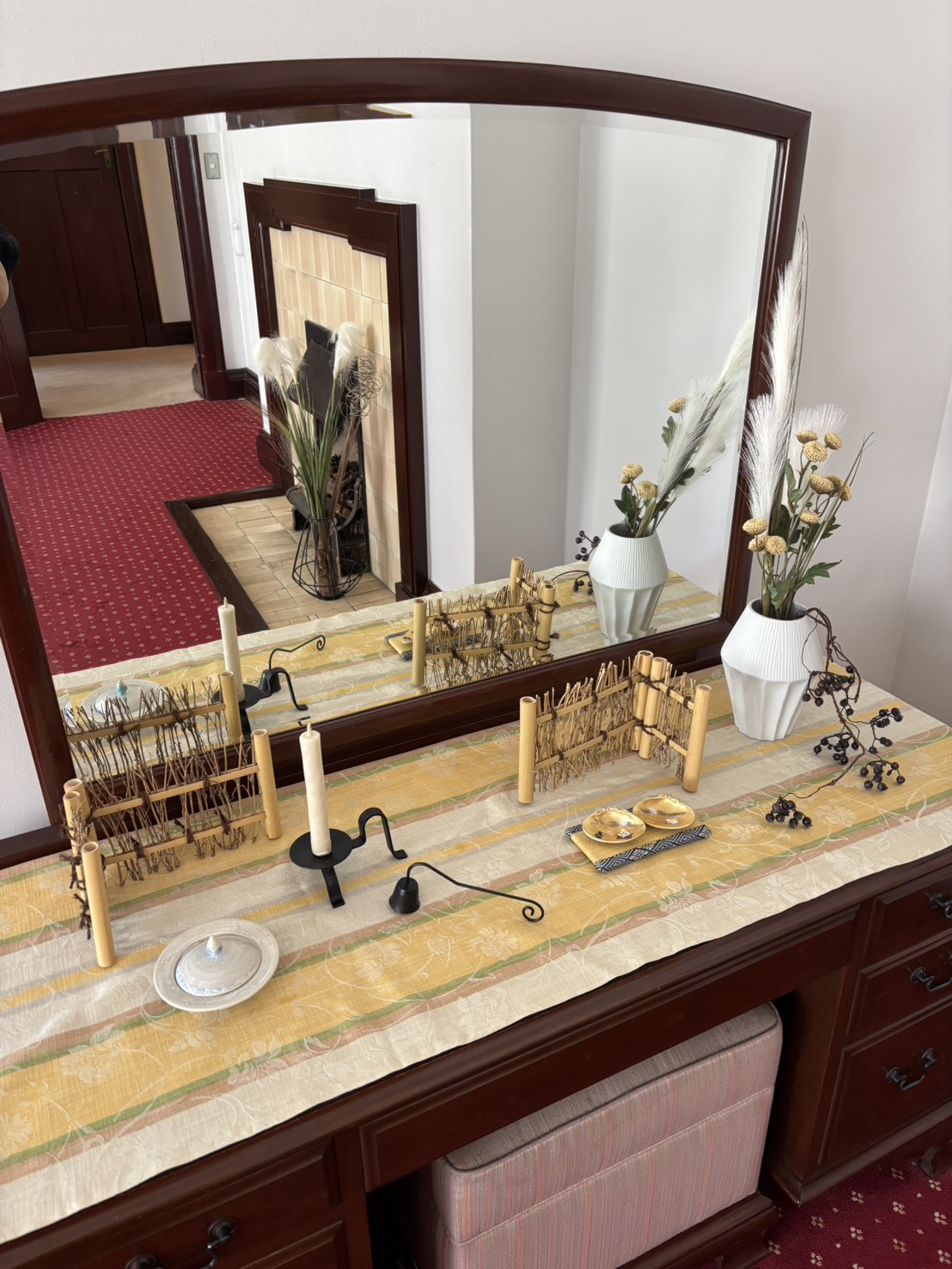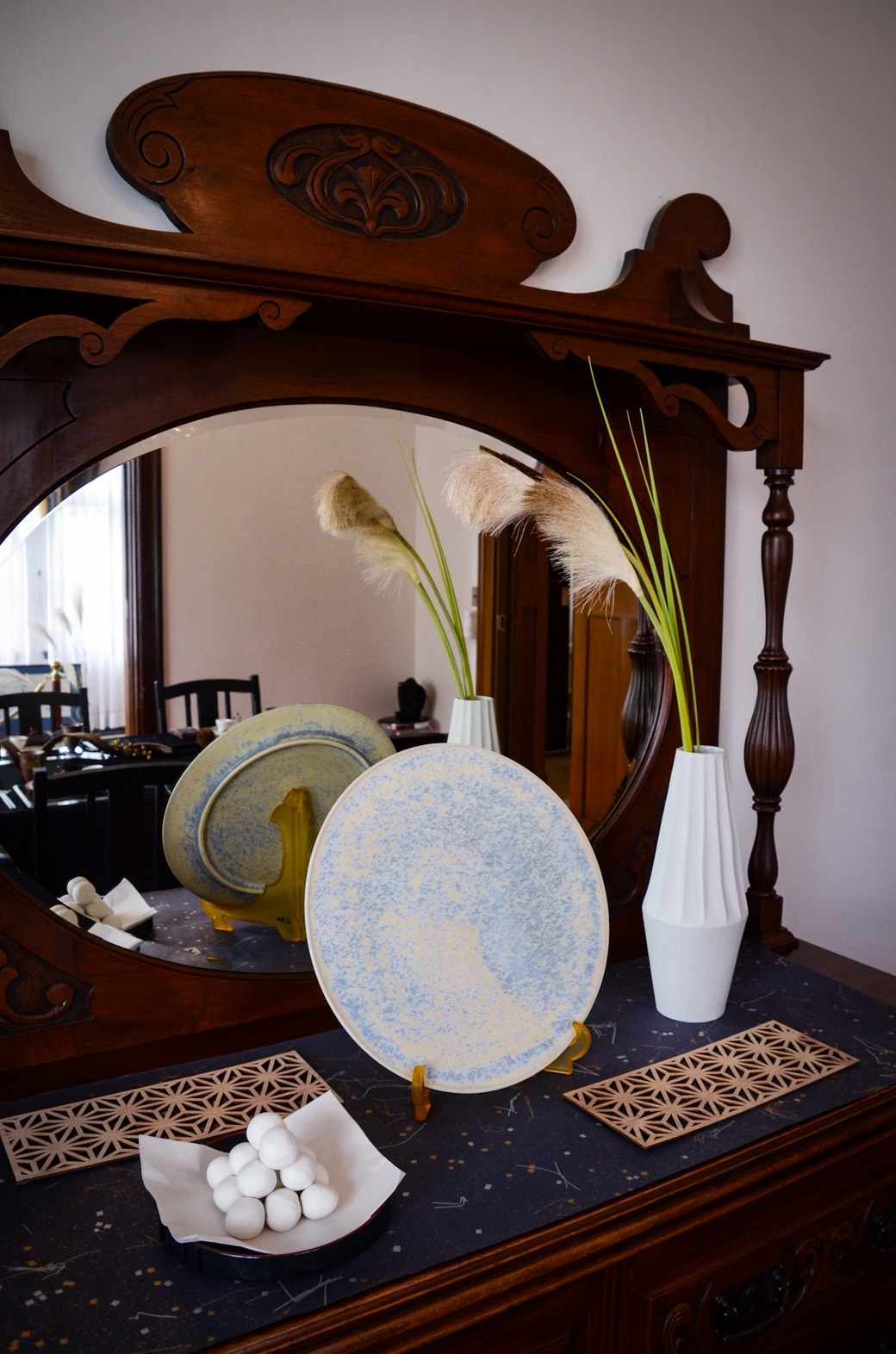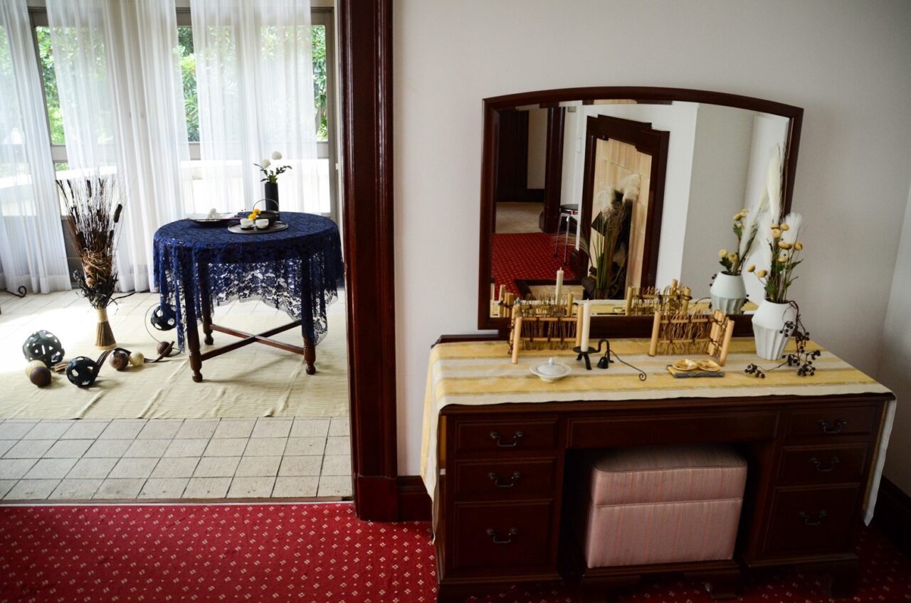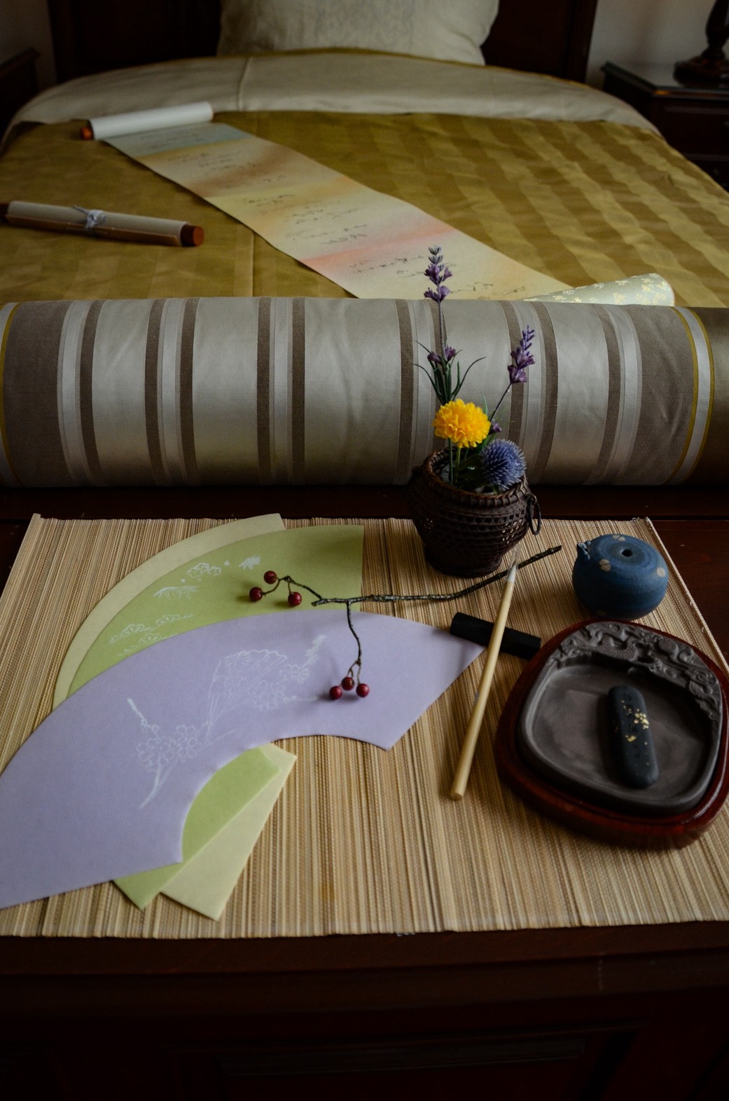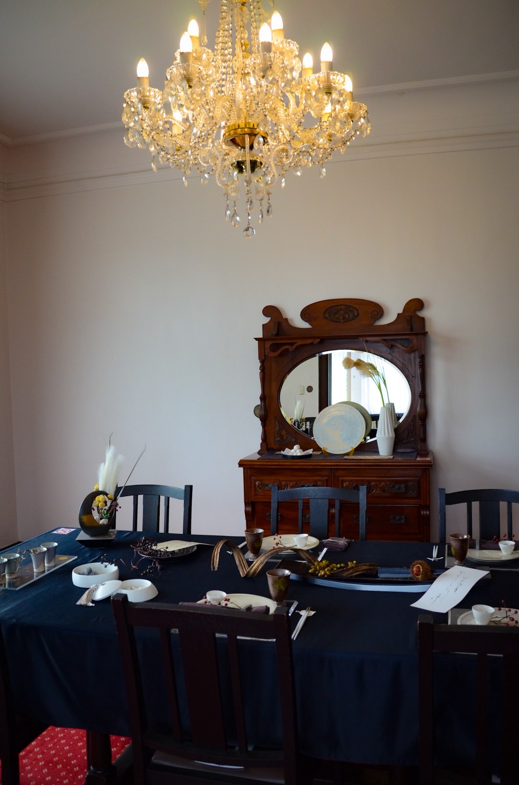 玉睿様には、今回のコーディネートをするにあたり、私のテーブル含めたコーディネートのコンセプトやカラーリングをお伝えし、テーブルにはこういう書、寝室にはこういう書などと私のイメージをお伝えし、それを快くくみ取ってくださり、私のイメージ以上の素敵な書の作品を作り上げてくださいました。 西洋館での書の展示は初めてのようで、とても珍しく素晴らしいとたくさんの方々にお褒めの言葉を頂きました。 最初は、西洋館での展示で書道家の方とのコラボ、そして、4部屋もある空間へのディスプレイは、とても大きな作品となりますし、躊躇しましたが、終わってみればとてもいい勉強になりましたし、素敵な出会いがたくさんあって幸せな一週間を過ごすことができました。