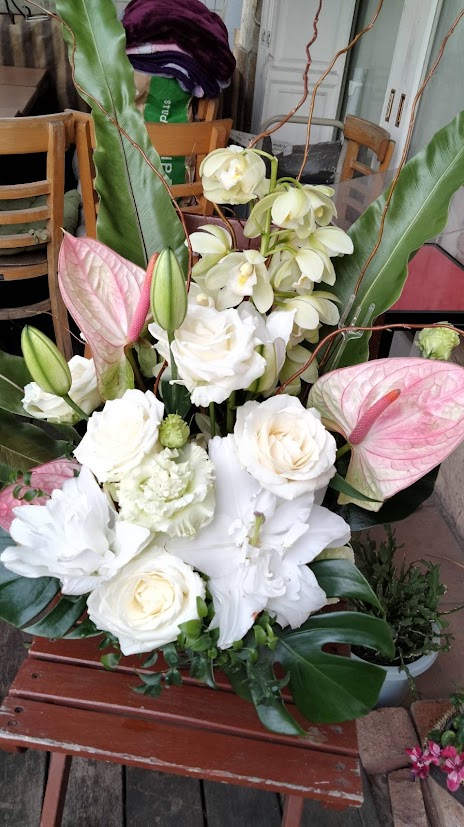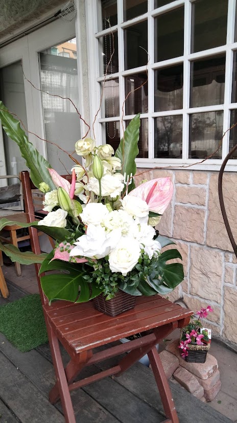 また、ディスプレイに使用したお花は、そのままプレゼントさせていただきましたが、後日、エステサロン ピエルナさんに飾ってくださったというお写真とこちらもうれしいお言葉をいただきました。